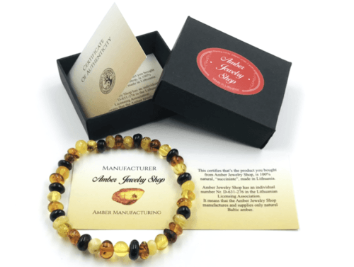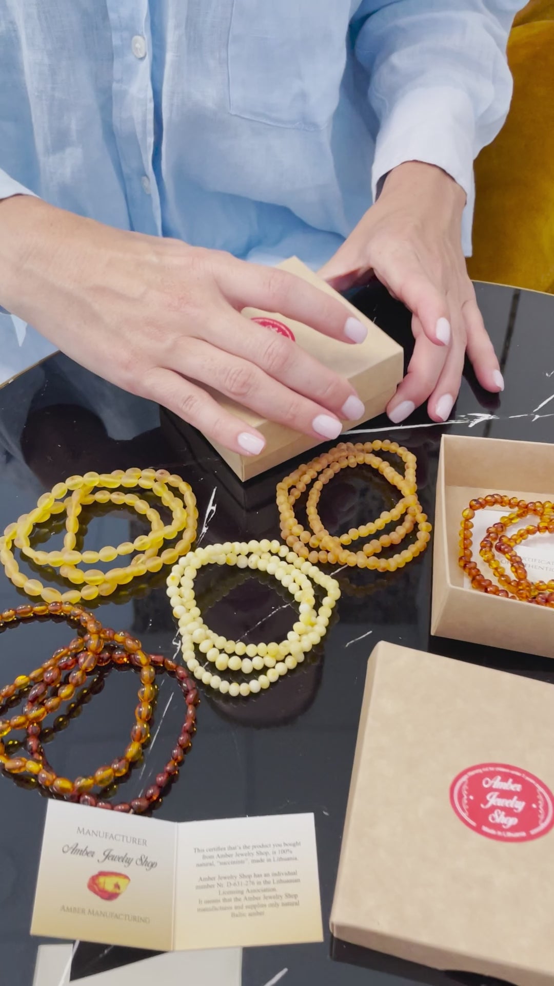 The succinic acid released from amber can provide mild pain relief, helping ease teething discomfort. The amber necklaces have a calming effect on babies.